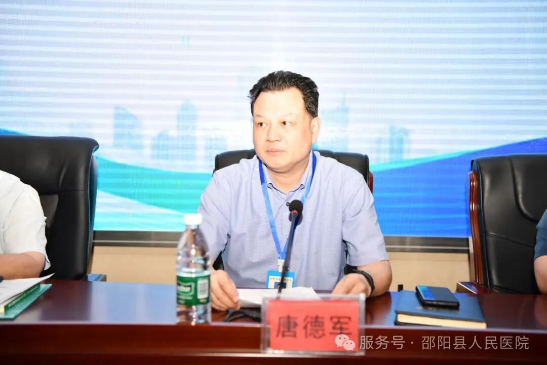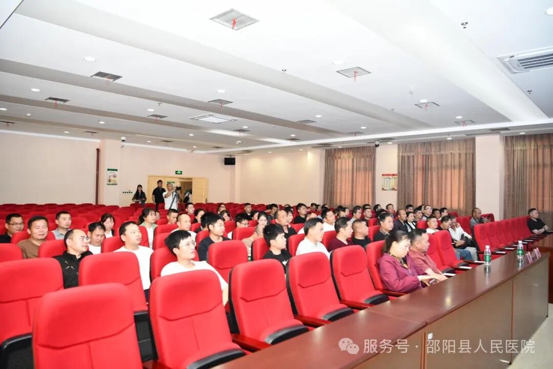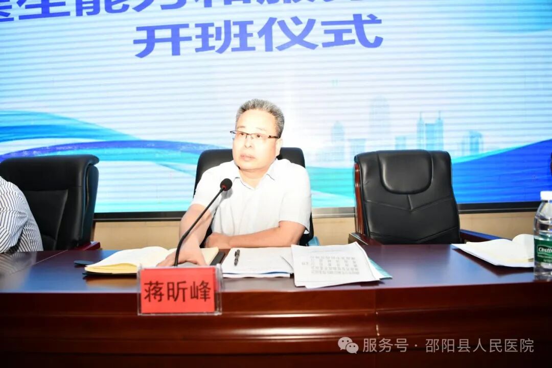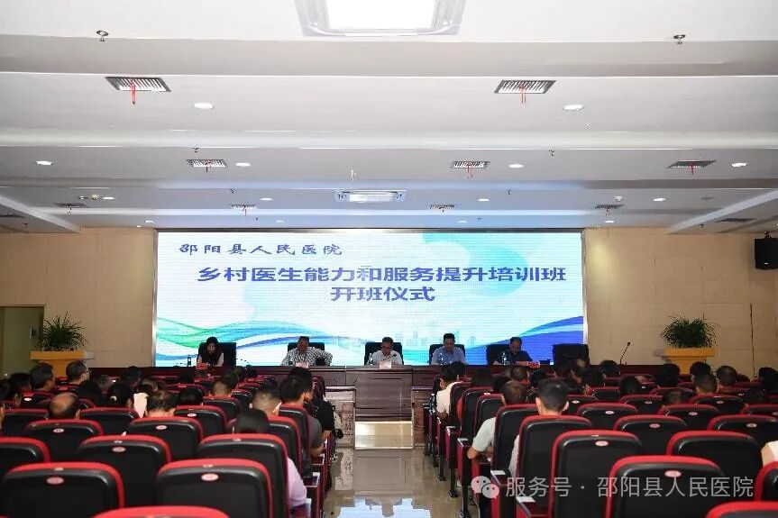 2025年5月13日上午,邵阳县人民医院在门诊四楼一会议室举行“2025年乡村医生能力和服务提升行动培训班”开班仪式。活动由副院长彭树林主持,县卫生健康局党组成员、副局长蒋昕峰,县人民医院党委书记唐德军等领导及全县乡村医师代表共同参与,旨在通过系统化培训强化基层医疗服务能力,助力紧密型县域医共体建设。