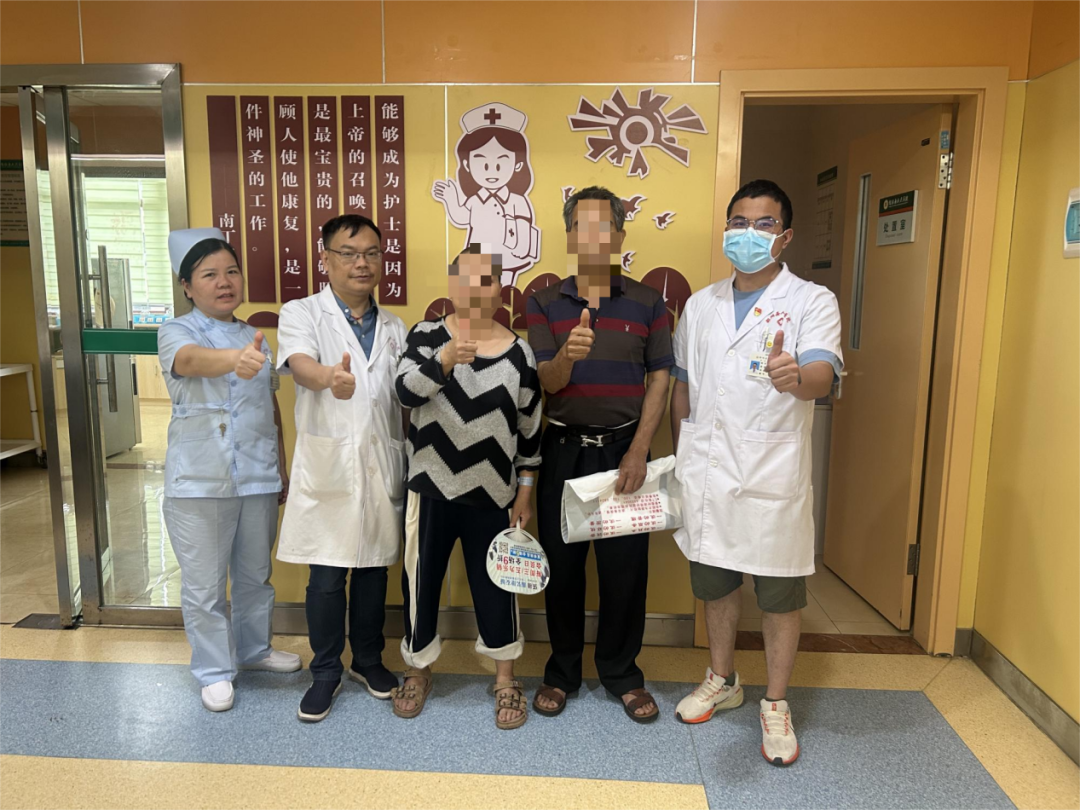 术后,简女士转入ICU。在阳治国团队精心治疗下,她成功闯过术后感染、颅内压控制等多重并发症难关,两周后奇迹般苏醒。随后,神经外科医护团队为其制订了专业康复计划。经过系统治疗与康复训练,简女士恢复良好,最终得以步行出院。