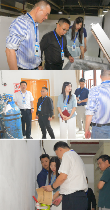 检查组一行先后前往危化品储存室、中心供氧站、配电室、消防控制中心、营养食堂等,每到一处,唐德军都认真听取相关负责人的情况汇报,详细询问安全管理制度落实、应急预案准备、设备设施运行维护等情况,并实地查看了环境安全、用电安全、消防安全、药品管理、食品卫生等方面的工作。